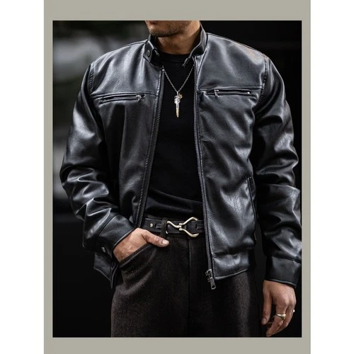 Café Racer Men Leather Jacket Black Brown Biker Genuine lambskin Leather S M L