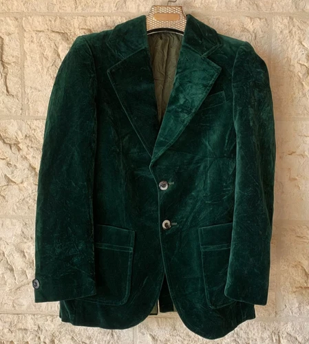 1970s Vintage 100% cotton velvet green classic belted jacket blazer 34R 34S