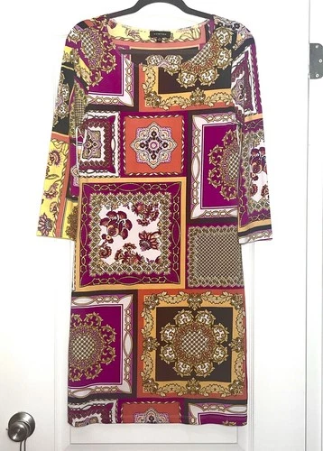 Spense Shift Italian Baroque Scroll Print Dress Size 8 Multicolor Retro Abstract