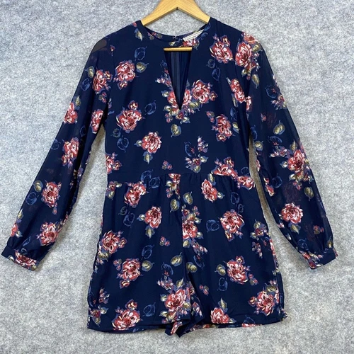 Abercrombie & Fitch Floral Navy Shorts Romper Jumpsuit Sheer Sleeves Size 2