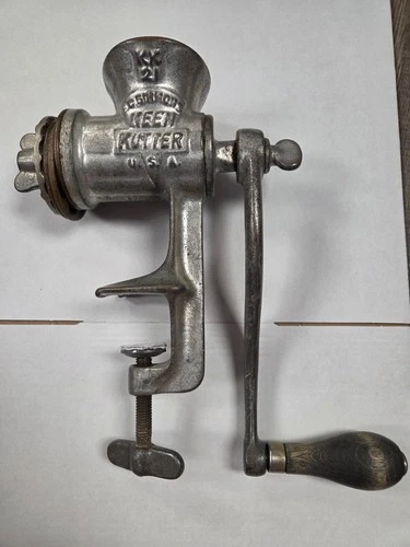 Vintage EC Simmons Keen Kutter 21 Food Grinder Antique Metal Iron Crank Handle