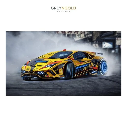 Lamborghini Tron Drifting Car Poster Wall Art Print pick size A4/A3/A2/90x60cm