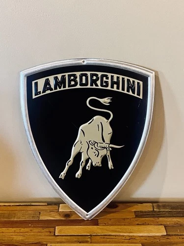LAMBORGHINI LAMBO VTG METAL SHIELD GARAGE PARKING SIGN PLATE MAN CAVE 11” X 9”