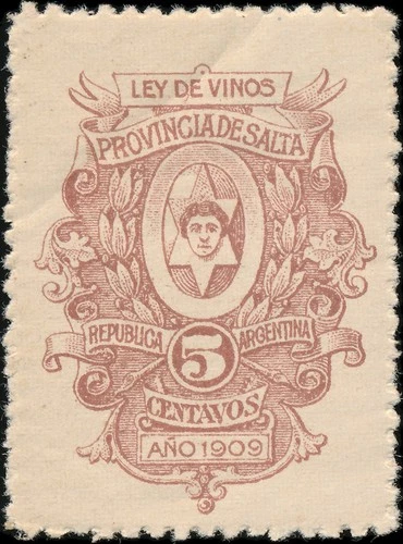 Argentina 'Salta' Local Revenue Stamp 5c 'Ley De Vinos' Wine 1909 MNH
