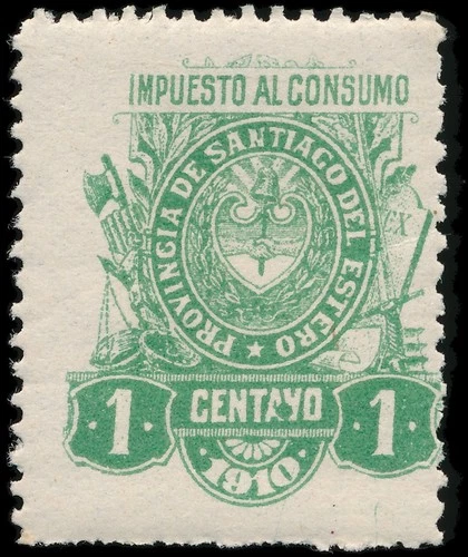 Argentina 1910 'Santiago Del Estero' 1c Revenue Stamp MNH