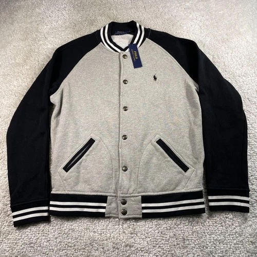 Polo Ralph Lauren Jacket Mens Large Fleece Varsity Snap Baseball Madison Avenue