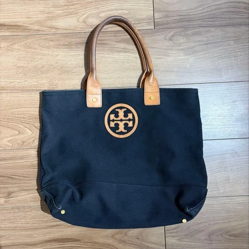 Product Title: Tory Burch Navy Canvas Tote Bag with Floral Interior From Japan