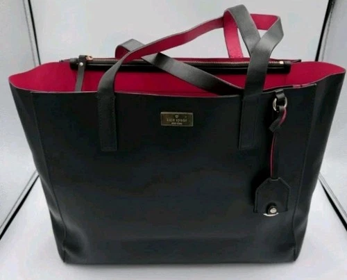 Kate Spade Black Leather 'Nelle' Large Tote Bag With Pink Interior