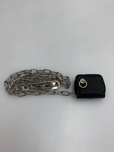 JAM HOME MADE World's Smallest Leather Wallet Necklace/Wallet Chain, Black, Men'