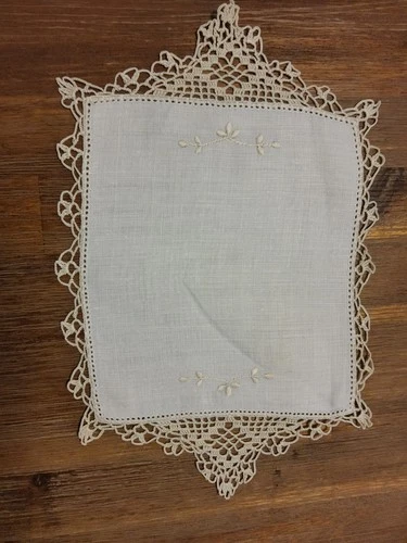 Vintage Cotton Linen Crochet Embroidery Handmade Off White Floral Doily