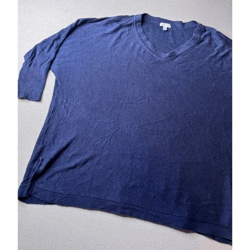 Garnet Hill Womens Navy Blue 100% Linen V-Neck Oversized Sweater 3/4 Sleeve L