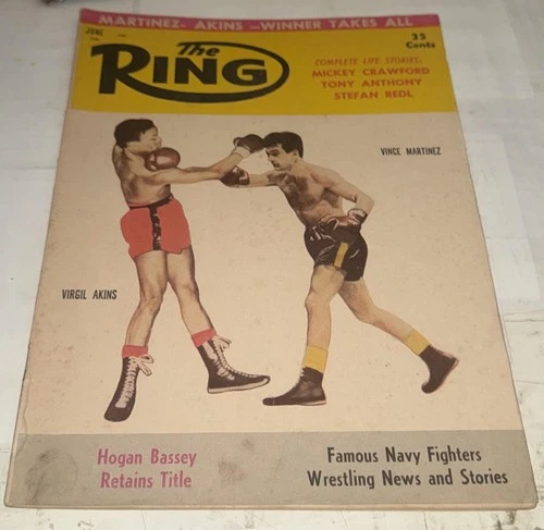 Vintage The Ring Boxing Magazine June Virgil Akins Vince Martinez Cover 35¢