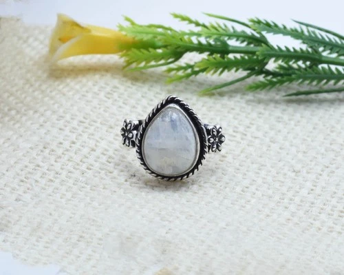 Gorgeous Rainbow Moonstone Gemstone 925 Sterling Silver Handmade Ring A-12