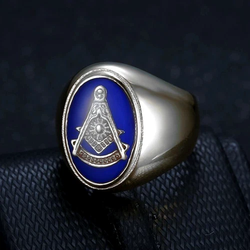 Oval Blue Enamel Masonic Ring Stainless Steel Men Women Freemason Ring Size 7-15