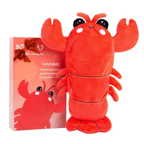Microwavable Heating Pad for Period Cramps, Cuddly Warming Lobster-Red, Red
