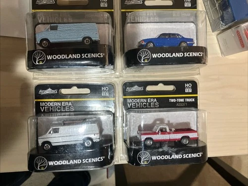 Lot Of 4 HO Scale Woodland Scenics Modern Era Vehicles Truck Work Van Blue Sedan