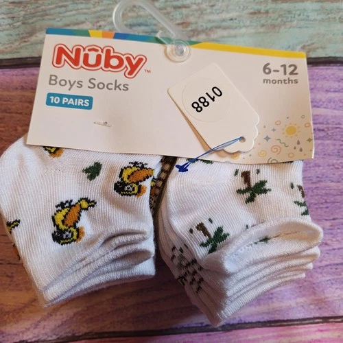Nuby Ankle Socks 10 Pairs Multicolor Animal Print 6-12 Months #0188