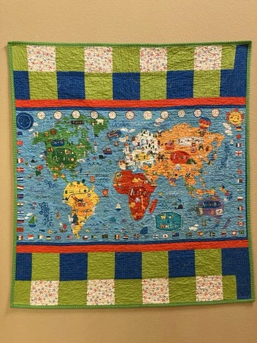 Quilts For Kids Planet Earth Map Patchwork Cotton Multi Color 35”x39” Handmade