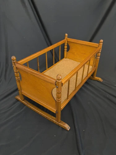 Antique Hand Made Hand Crafted Wooden Doll Crib For Baby Doll 17.5” Long