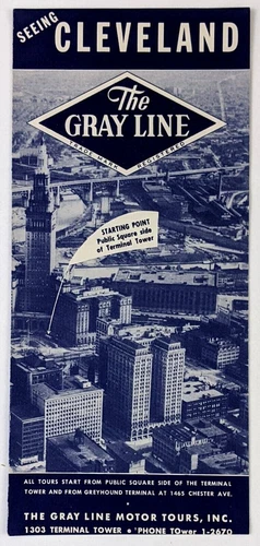 1950s Cleveland Ohio The Gray Line Redifer Bus Tours VTG Travel Brochure Stadium
