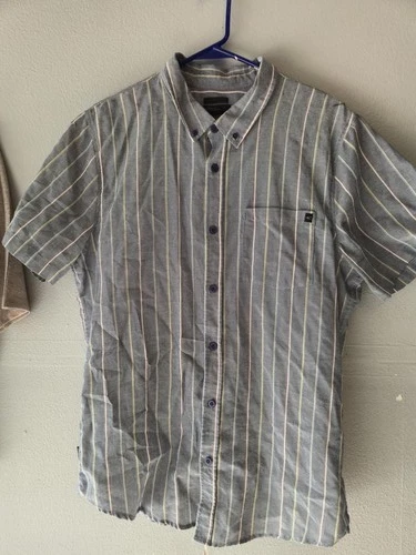 O'Neill Tailored Fit GRAY WITH WHITE Striped Short Sleeve BUTTON UP Shirt XL