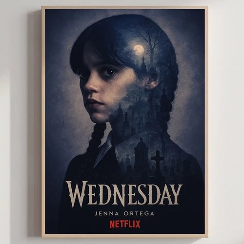 Wednesday Jenna Ortega Netflix Gothic Series Dark Art Poster
