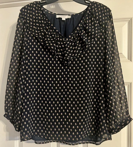LOFT Coquette Ruffle Cottagecore Quiet Luxury Old Money Career Chiffon Size S