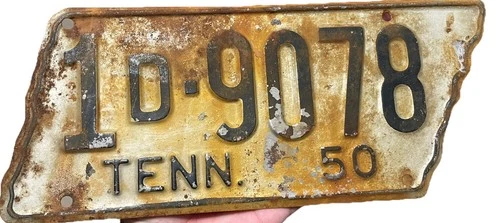 1950 Tennessee License Plate Vintage Rusty State Shaped Tn Tag Patina