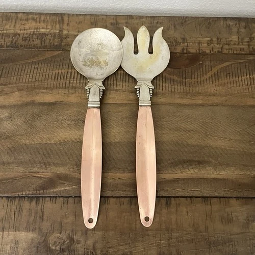 Salad Fork Spoon Serving Ware Vintage Patina Silver Plate with Copper Handle