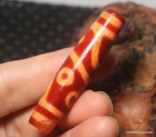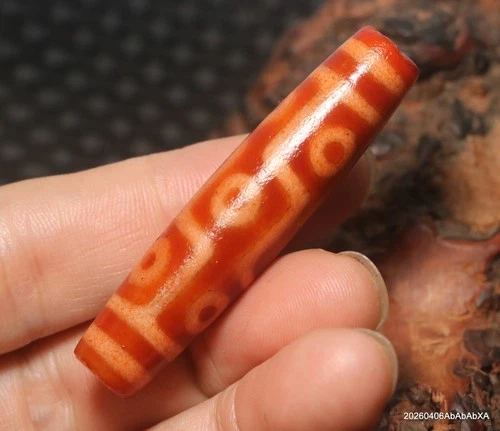 Energy Tibetan Old Agate Red Color Weathering Patina 9 Eyed King dZi Bead Amulet