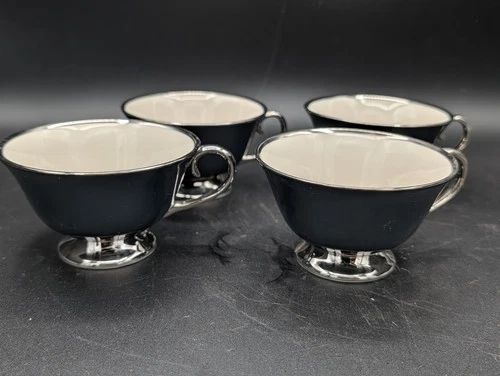 4 Vintage Flintridge Contessa Teal Black Platinum RimTeacups Tea Cups