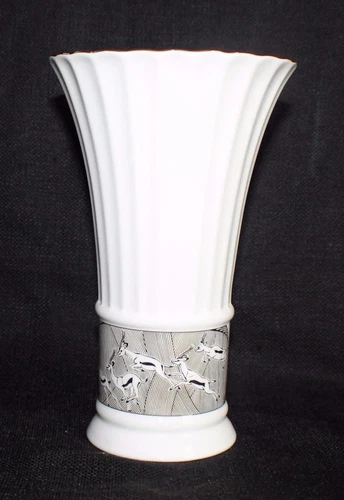 Vintage LENOX Bone China Made USA White 8"h DEER Trumpet Vase Platinum Trim