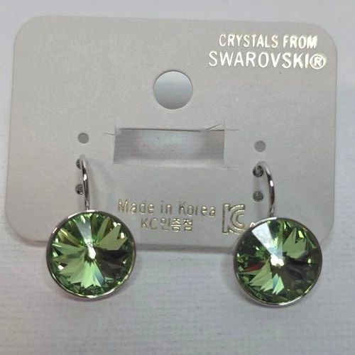 New! Swarovski Elements PeridotGreen Leverback Platinum Plated Earrings 13mm #4
