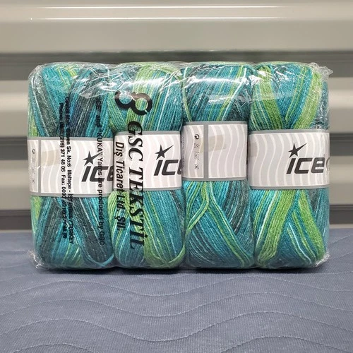 Ice Yarns Sock Yarn 4 Skein Green Variegated Superwash Wool Blend Turkey