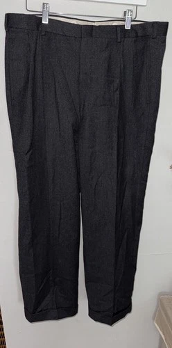 Brooks Brothers Sz 36 X 28 Dark Grey Wool Pleated & Cuff Dress Pants