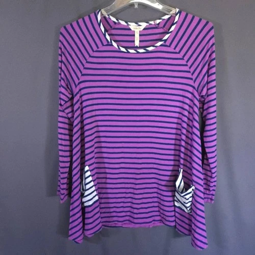 Matilda Jane Tunic Shirt Long Sleeve Pockets Striped Size Medium Preppy Coastal