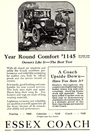 c1910 ESSEX COACH AUTOMOBILE TOURING CABRIOLET COACH VINTAGE ADVERTISEMENT Z1134