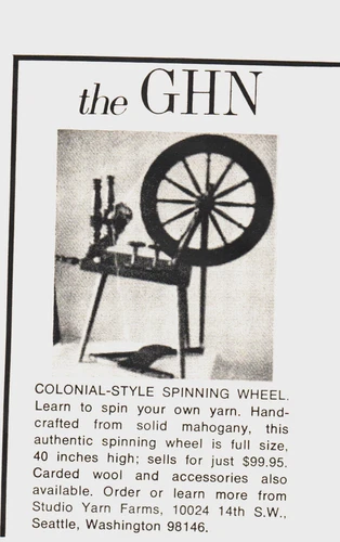 Studio Yarn Farms Seattle WA Colonial Style Spinning Wheel 1970s Print Ad 426