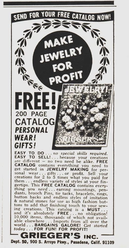 Grieger's Pasadena CA Findings Catalog Make Jewelry For Profit '70s Print Ad 426