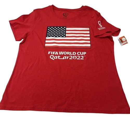 FIFA World Cup Qatar 2022 T-Shirt Women XXL Red Excellent USA Flag Soccer Tee