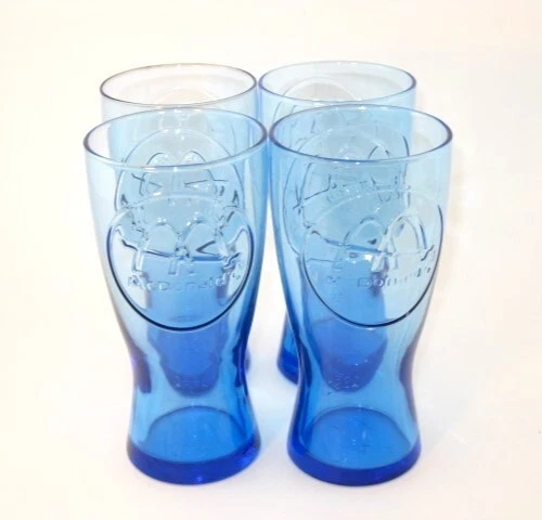 SET OF 4 McDonald's Retro 1961 Blue Advertising Drinking Glasses Reproduction