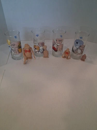 Vtg Pizza hut limited edition collectors series set of 4 ET glasses w 4 ET toys