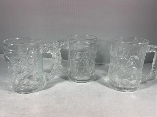 McDonalds Batman + Robin Forever Glass Two Face Mug Cup 1995 Vtg DC Comics Set 3
