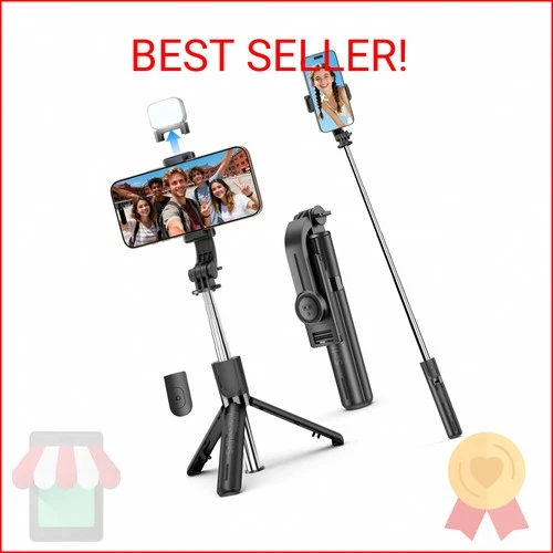 Mini Selfie Stick Travel Tripod for Cell Phone with Light, Extendable Selfie Sti