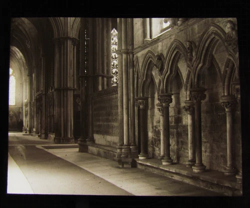 Glass Magic Lantern Slide LINCOLN CATHEDRAL S CHOIR AISLE C1900 ENGLAND