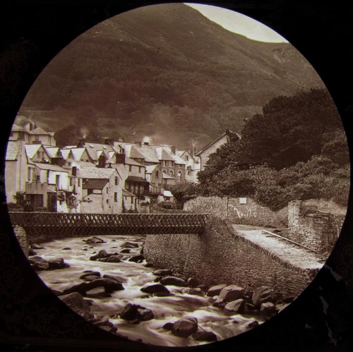 Glass Magic Lantern Slide BRIDGE AT LYNMOUTH DEVON C1890 PHOTO ENGLAND