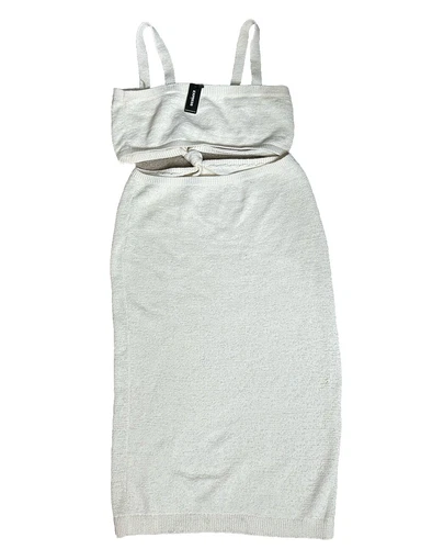 Express Women's Sweater Dress Ivory XL Knot Front Cutout Midi Knit Tank Sexy New