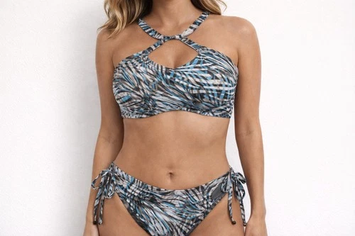 New Victoria's Secret Hi-Cut 2pc Sexy Bikini BROWN/BLUE Women's size 34DD/XSMALL