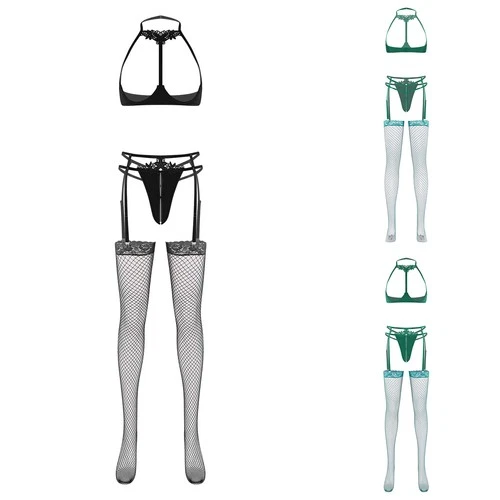 Women Underwear Bralette Set Thong Lingerie T-back Fishnet Sexy Stockings For