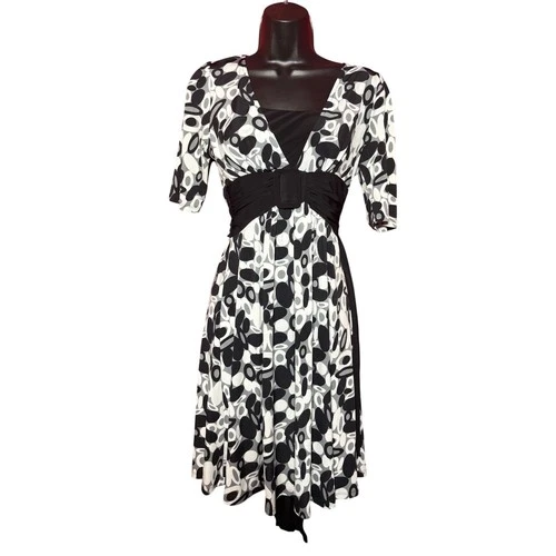Maurices Women Small Black White Geometric Circle V-Neck Empire Waist Dress
